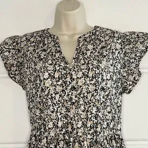 Time and Tru Women's Mini Dress Flutter Sleeves Ditsy Floral Cottagecore Grannycore