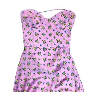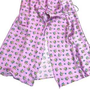 ZARA Floral Print Lace up Black Silky Satin Fitted Midi Dress in Pink Size S New