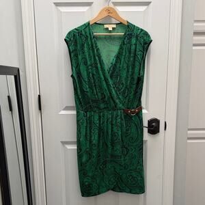 MICHAEL KORS Belted Green Paisley Short Sleeve Wrap Dress Size XL