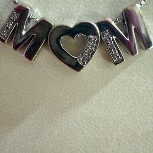 Sterling Silver 'MOM' Necklace 18” with CZ stones with original box