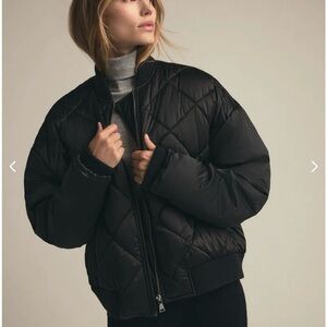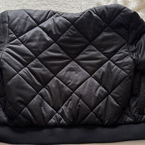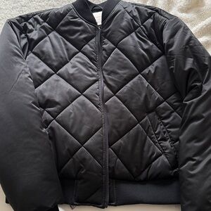 Stylish black quilted bomber jacket. Perfect for a chic look.