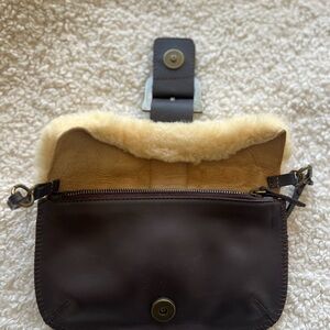 UGG Shearling Leather Clutch Shoulder Bag Brown 8inx5.5in Cozy Mini Purse