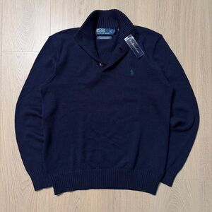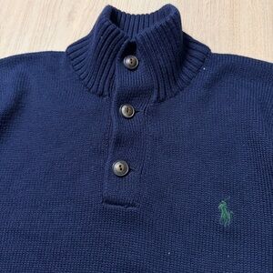 Polo Ralph Lauren Cotton Buttonup Long Sleeve Knit Sweater Mens Small Navy Blue