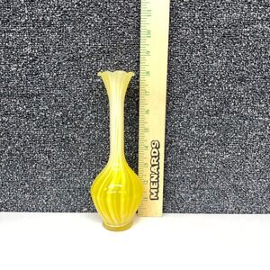 Vintage Yellow White Swirl Glass Bud Vase Ruffled Scalloped Rim Hand Blown 10"