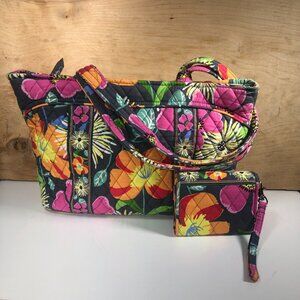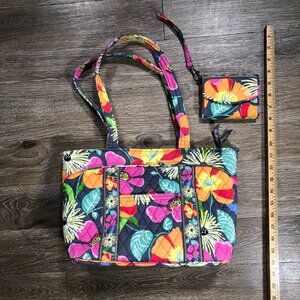 Vera Bradley Medium Tote Purse Handbag with matching Trifold Wallet.