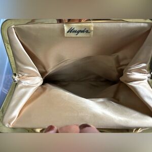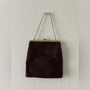 Vintage Unger Burgundy Satin Kiss Lock Clutch w/ Chain Strap