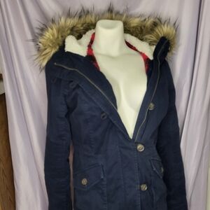 Hollister Navy Utility Jacket with Faux Fur Hood