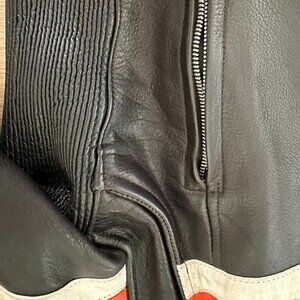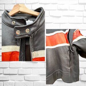 VINTAGE/RETRO BIKER JACKET BLACK/ORANGE ITALIAN LEATHER - HARD TO FIND