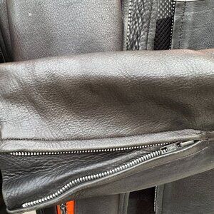 Known for its quality and durability, Italian leather is a mark of luxury. This jacket is built to last and age beautifully, gaining character with every wear. Ideal for those cooler days or just when you need that extra layer of protection. It’s sturdy and reliable, just like a good biker jacket should be. With air slits and zippers in the sleeves, this jacket is designed for comfort and practicality. Perfect for rides or casual wear. Zippers add both functionality and a touch of rugged style. They make it easy to adjust the fit and add to the overall biker aesthetic.