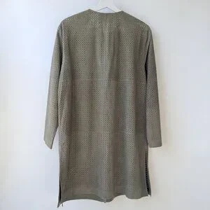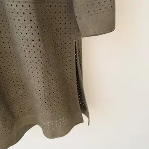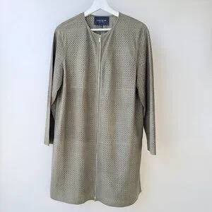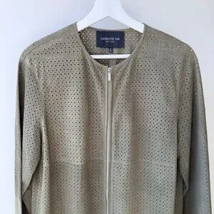 Model: Lafayette 148 Laser-Cut / Perforated Leather Zip-Front Jacket