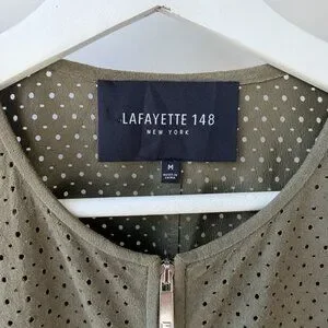 Lafayette 148 New York Leather Zip-Front Jacket – Olive Green (Size M)