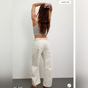 Low-slung and effortlessly cool, this pair of barrel-leg jeans from Free People features a drawstring waist, tonal patches and splatter details for a lived-in look.