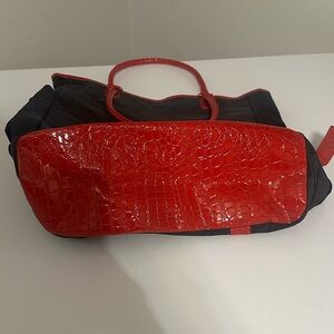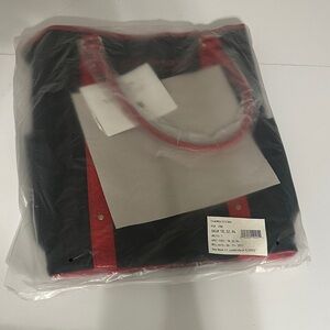 Stylish Ed Hardy tote bag. Features bold tattoo-inspired design. Red handles and trim. Spacious interior. New never used.