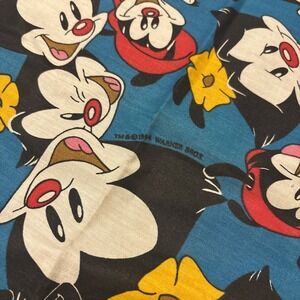 Vintage 1994 Blue Animaniacs cartoon COTTON FABRIC Yakko Wakko 44 x 60in 1.5yd