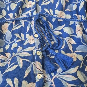 FAHERTY Women Size XS Blue Floral S/SL Button Front Ruffle Dress