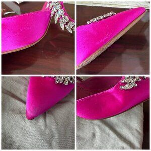 Manolo Blahnik Lurum Pink Satin Crystal 90mm Mule Heels EU 40 w/Box Dust Bag COA