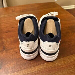 On Running The Roger Advantage shoes in White/Midnight colorway, new with tags. Men’s size 12. Clean, versatile sneaker combining performance comfort with classic tennis inspired style.