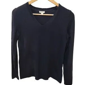 J.JILL Classic Navy V-Neck Lightweight Knit Sweater