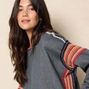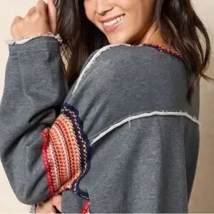 Natural Life - Colorful Knit Trim - Oversized Sweatshirt - Boho Sleeves - L/XL