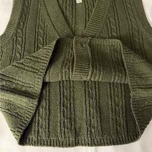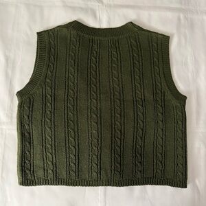 Pink Rose Sleeveless Cropped Green V-Neck Sweater Vest