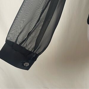 Black Velvet Body With Satin Accents And Sheer Sleeves