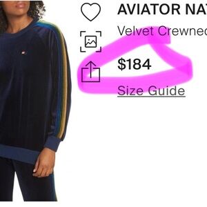 Aviator Nation Navy Blue Classic Velvet 5 Stripe Crewneck/Sweatshirt/Pullover|🌈