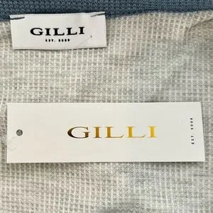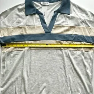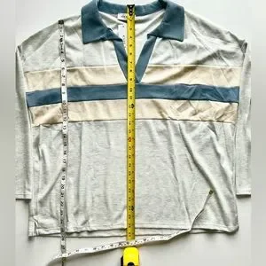 🌸NWT Women’s Waffle V-Neck Collared Top. Blue/Grey/Cream. Size: Large