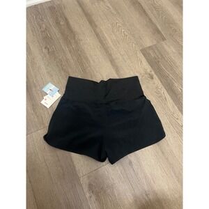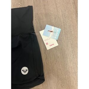 Roxy Black High Waisted Swim Board Shorts Recycled Fibers Logo NWT