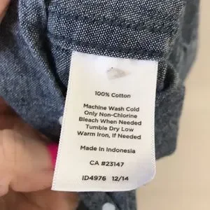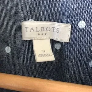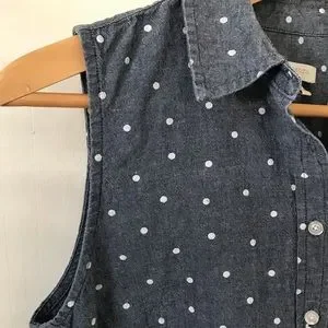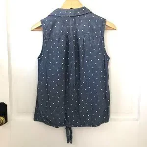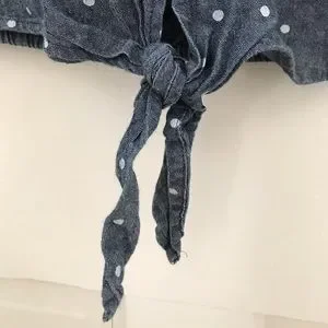 Lightweight cotton with blue denim and white polka dots, button front, tie front, Excellent Pre-loved Condition!