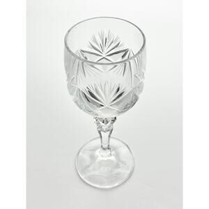 1980s Vintage 3 Crystal Wine Glasses 6 3/4” 8oz Fan & Cross Hatch Cuts, Barware
