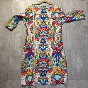 J. McLaughlin Multicolor 3/4 Sleeve Dress Sz L