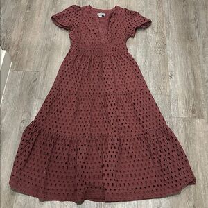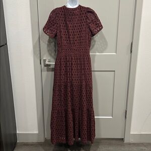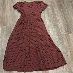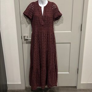 Anthropologie Somerset Maxi Dress Eyelet Edition Tiered Chocolate BROWN L