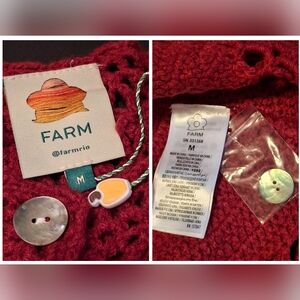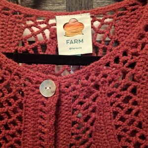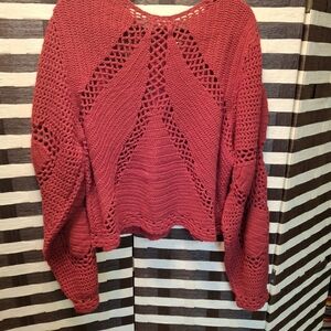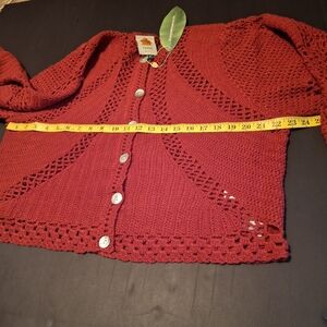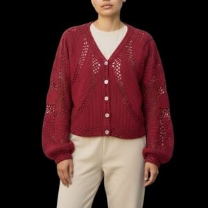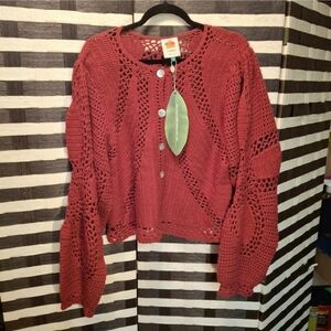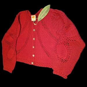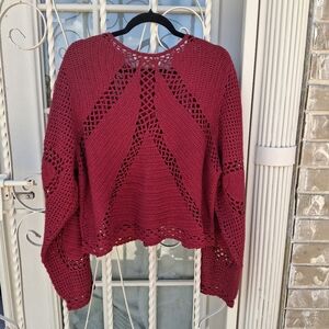 Farm Rio Handmade Crochet Dark Red Long Sleeve Cropped Sweater Women Size Medium