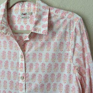Faherty Organic Cotton Malibu Pink Taj Floral Long Sleeve Boyfriend Shirt