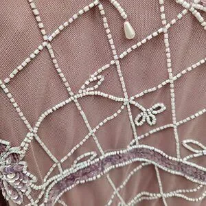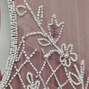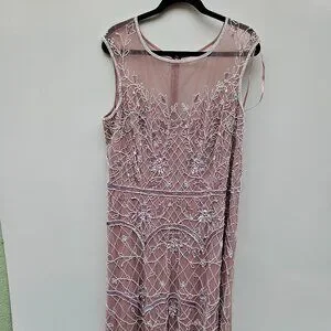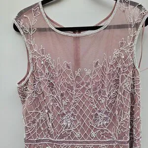 GUC Adrianna Papell Mauve mesh dress with white beads. Dress has some loose beading, please see all photos carefully.