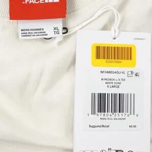 The North Face Mens TNF Red Box Logo Long-Sleeve Tee in White Dune Oversized Fit