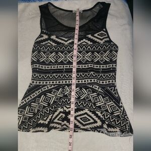TeenBell Black and White Tribal Pattern Tank Top, With Fit And Flare Style. Sz M
