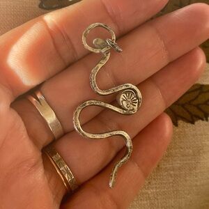 handmade sterling silver snake pendant with rainbow moonstone- imperfections are normal with handmade artisan jewelry