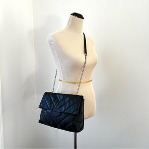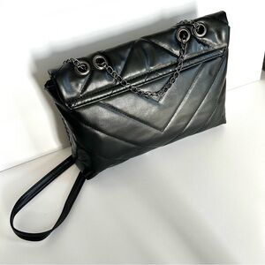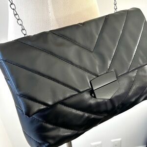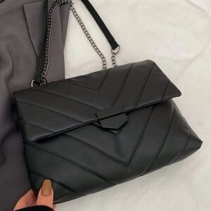 🌸Black Vegan Leather Crossbody Bag. Chevron Design.