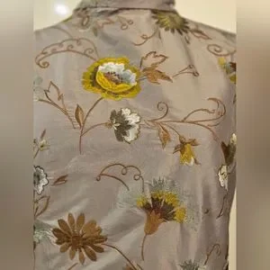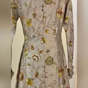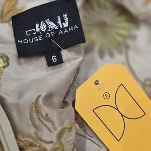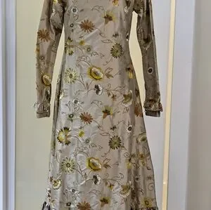 HOUSE OF AAMA Elegant Floral Beige Silk Dress With Floral Embroidery Size 6