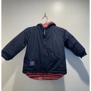 Jojo Maman Bebe Size 4 5 Fleece Lined Blue Jacket Striped Reversible Waterproof