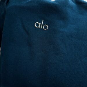 Cozy teal hoodie with soft lining. Features Alo branding.