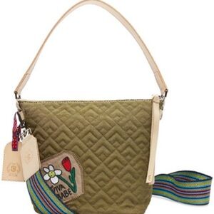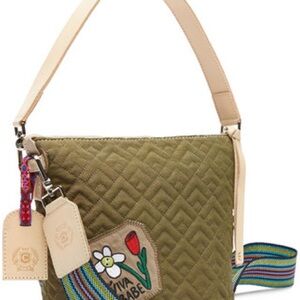 Consuela Olive Quilted Crossbody Bag with Floral Patch NWT