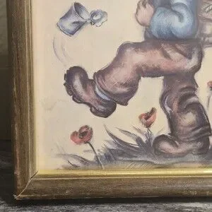 Vintage Bessie Pease Gutmann Print Boy w Flowers Evans Framed Nursery 7x9