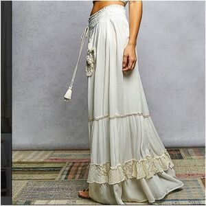 POL Stretchy Waist Sequin Frayed Floral Maxi Skirt