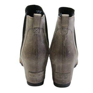 Sorel Lea Gray Wedge Booties Womens 9 Waterproof Leather Chelsea Ankle Boots