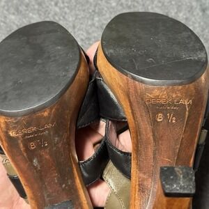 VTG Y2K Derek Lam Womens 8.5 Leather Strap Wooden Heels Pink Black Made in Italy