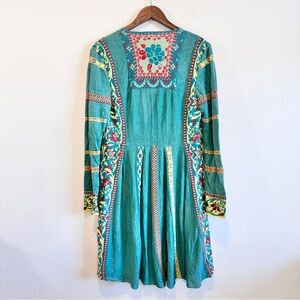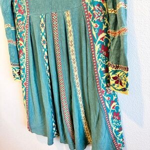 IVKO Boho Resort Embroidered Linen Long Jacket Duster Women’s Medium Artsy NWT