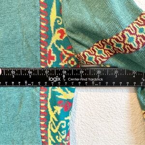• Color: Petrol teal with multicolor woven motifs