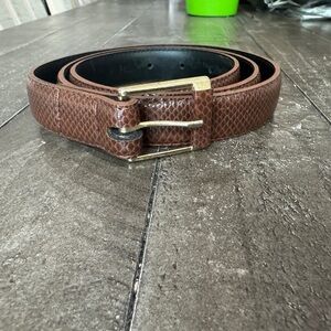 VINTAGE Mexico Brown Leather Textured Belt Gold Hardwear Size 36